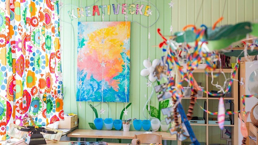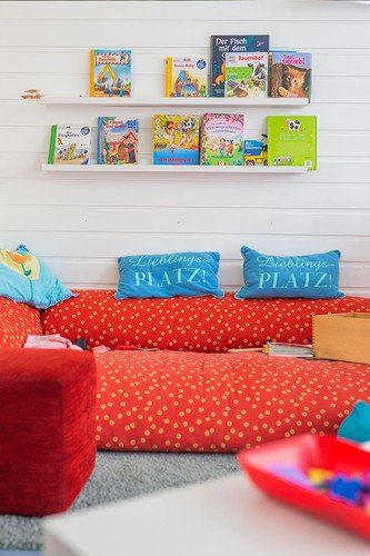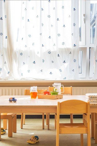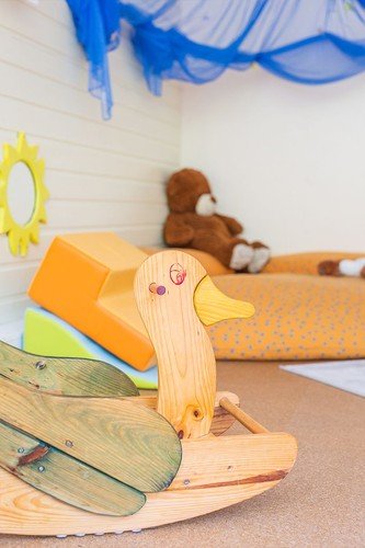 Unsere Kindertagesstätte verfügt über acht Gruppenräume, einen Schlafraum und einen Turnraum. Alle Gruppenräume verfügen über Kreativecken, Hochebenen oder Bau-Ecken, in denen die Kinder gerne spielen.